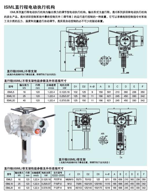 ISML系列直行程電動執行機構為輸出推力的調節型電動執行機構,輸出形式為直行程,是IS系列多回轉電動執行機構的派生產品,是對閉環控制系統中最終控制元件(調節閥)的運行進行控制的一種裝量,它可以準確地技控制指令對系統工況介質的壓力、溫度和流量進行自動調節,是實現自動控制的必不可少的驅動裝量。